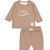 Set van Feetje bestaat uit taupe broekje en overslagshirt van gelijke print.