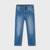 Luchtige blauwe blouse van Mayoral met "opa kraagje"