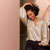 Room-witte bouclé mantel met parelmoer knopen van Smashed Lemon.