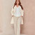 Offwhite jas van Smashed Lemon met blinde knoopsluiting met 3 grote drukknippers, ceintuur van gelijke stof 2 steekzakken aan voorzijde.
